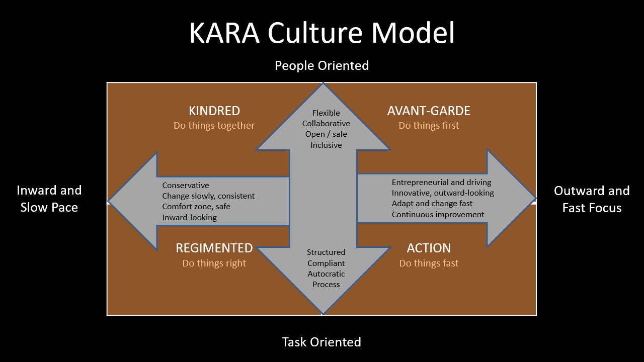Where the two scores intersect reveals the quadrant you currently operate in… Kindred,Avant-Garde, Regimented or Action.